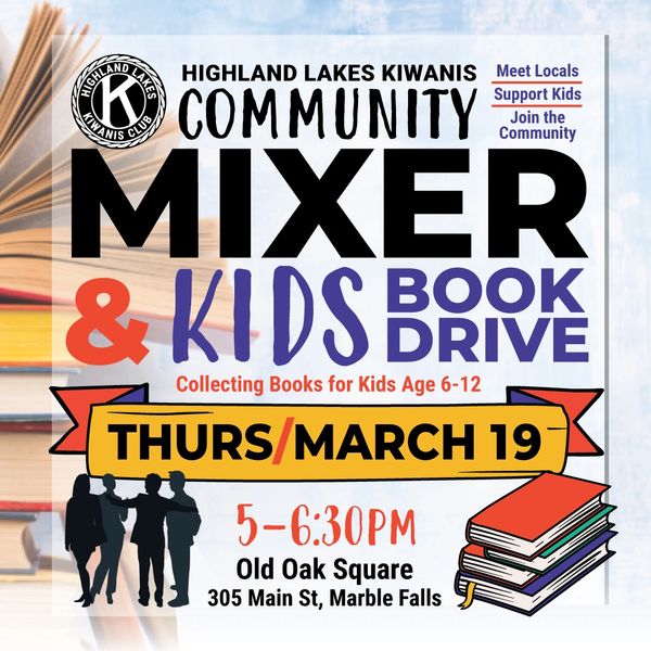 Join us for an evening of community connection while supporting local students! The Kiwanis Club & Highland Lakes Service League are collaborating to collect MFISD-approved books for the Kids Book Drive. Help us make a difference by spreading the word, please share with friends & neighbors.
